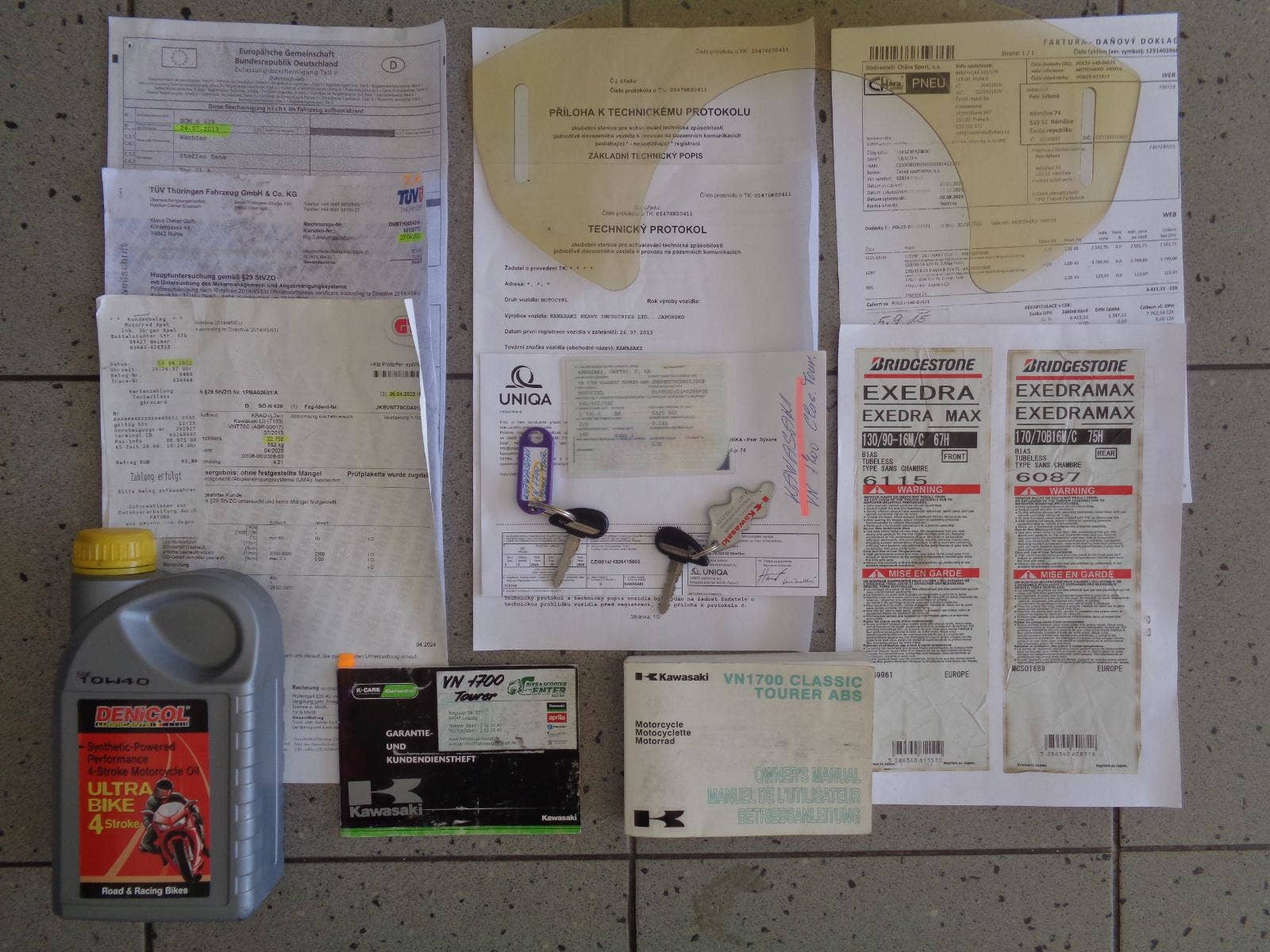 KAWASAKI VN 1700 Classic TOURER – ABS, r. v.: 2013, provoz: 7/2013, najeto: 42.186 km. Dovoz ze SRN od 1. majitele 3/2024. Servisní knížka s pravidelnými záznamy, orig. manuál, kopie D - T.P., protokoly od servisů, ze STK, účty … 2x orig. klíče, nepoužité nářadí. T. K. do 3/2028.