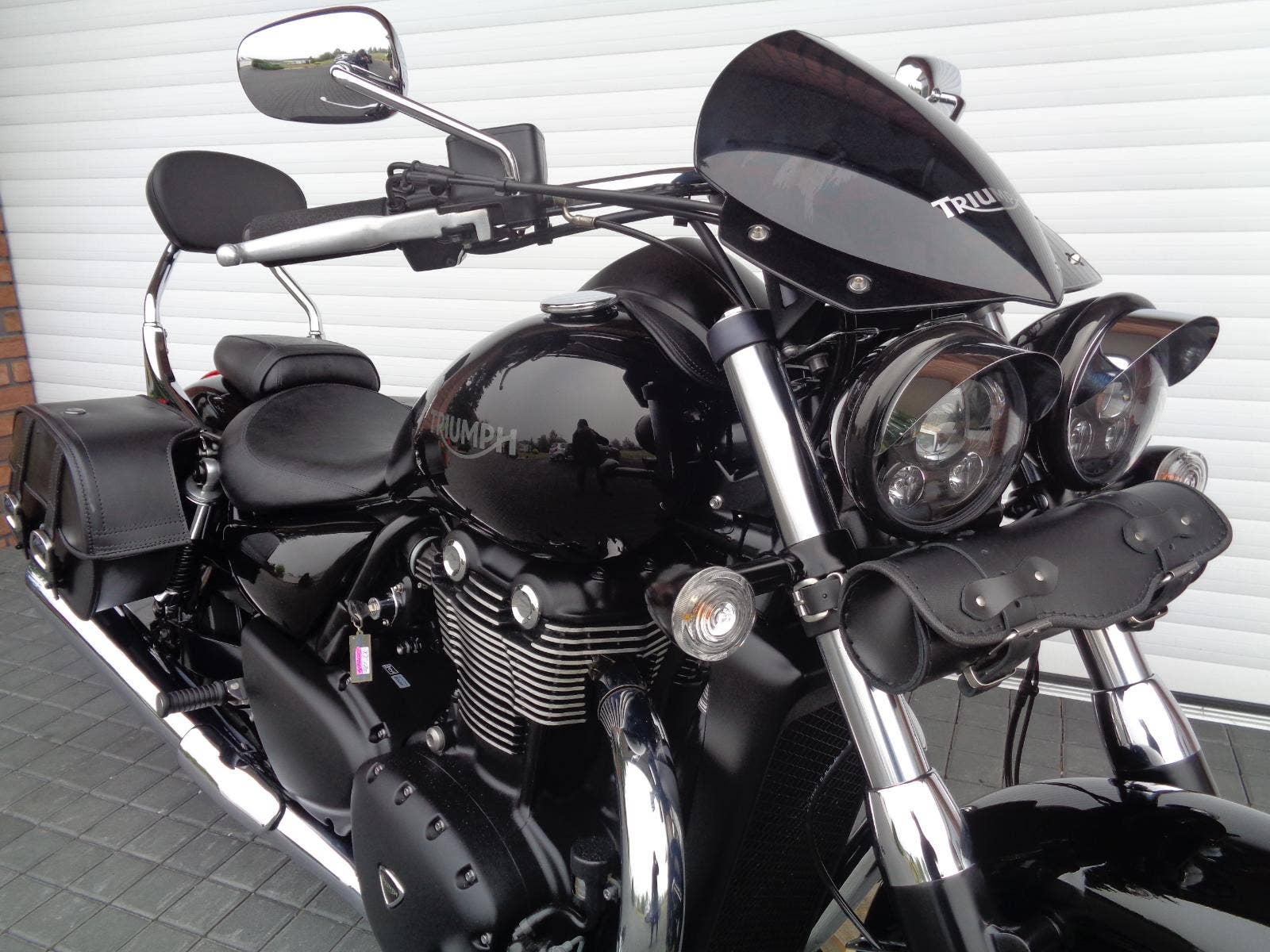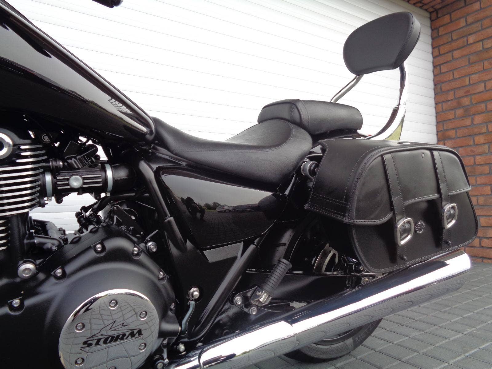 VÝBAVA v základu: ABS, palubní počítač … dále origo plexi štítek, přední LED světlomety, nová originální opěrka spolujezdce – rychloupínací, značkové kožení brašny - zamykatelné, na pevných podpěrách, nová rolka, kožený pás nádrže, dále pěnové návleky rukojetích, dobíjecí kabel baterie, stínítka světel … atd.